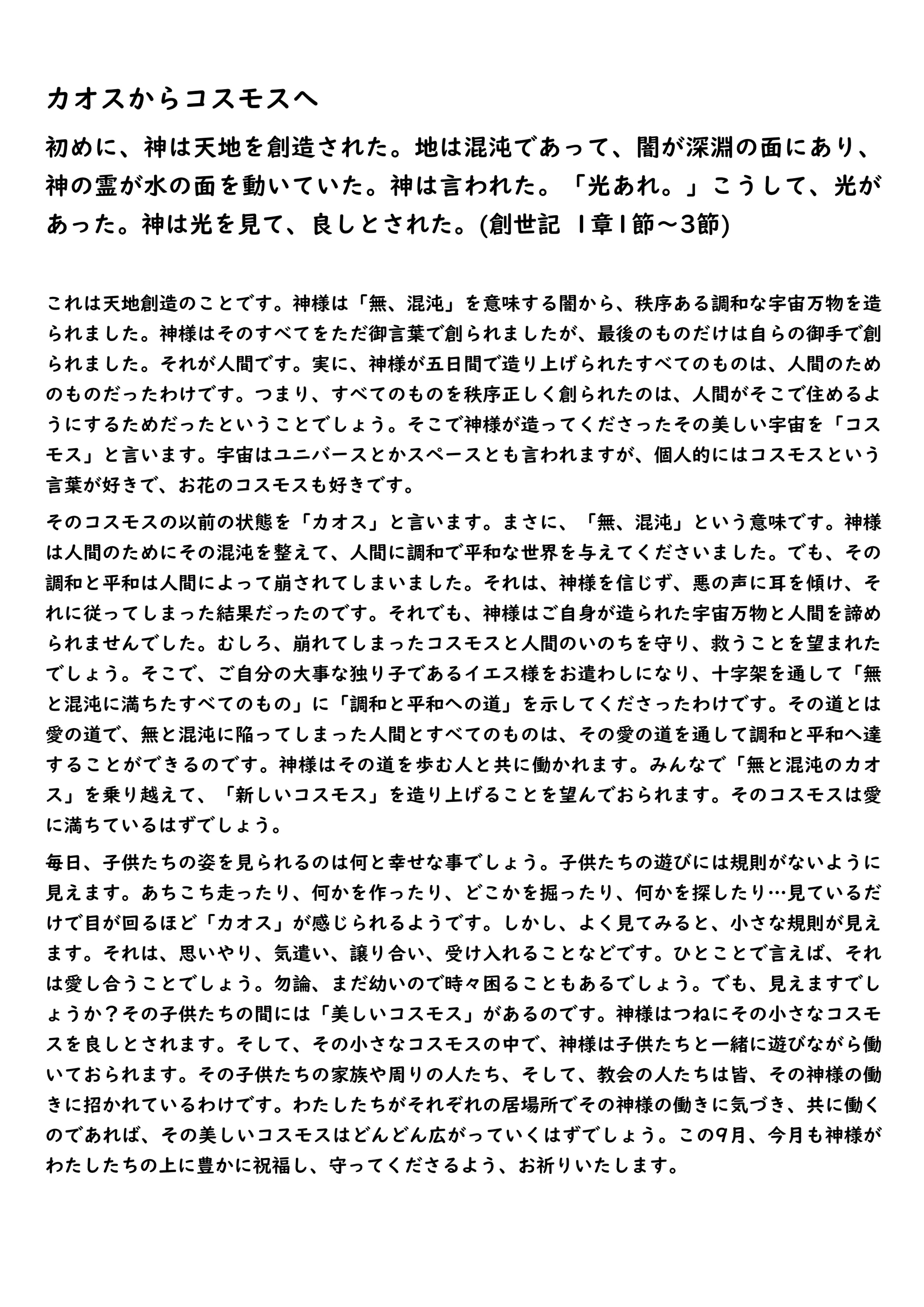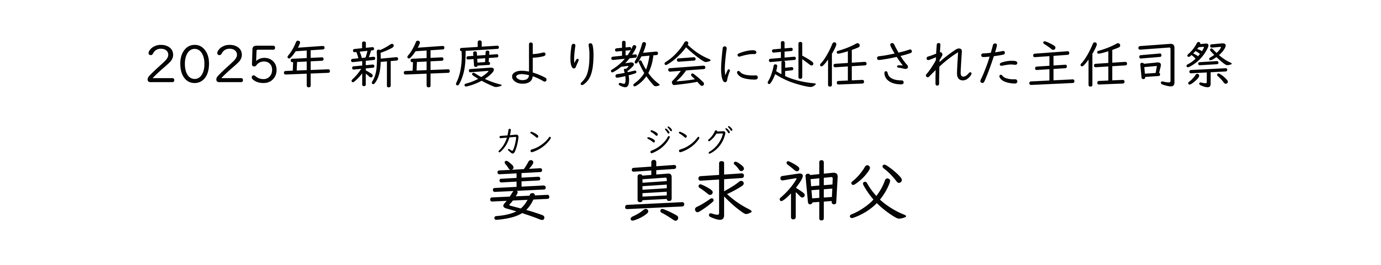 韮崎カトリック白百合幼稚園の保護者の皆様、はじめまして。この度、カトリック韮崎教会の新主任司祭として赴任させていただいたヤコブ姜真求と申します。大事な子供たちと共に過ごすことができ、とてもうれしく思います。これからどうぞよろしくお願いいたします。
