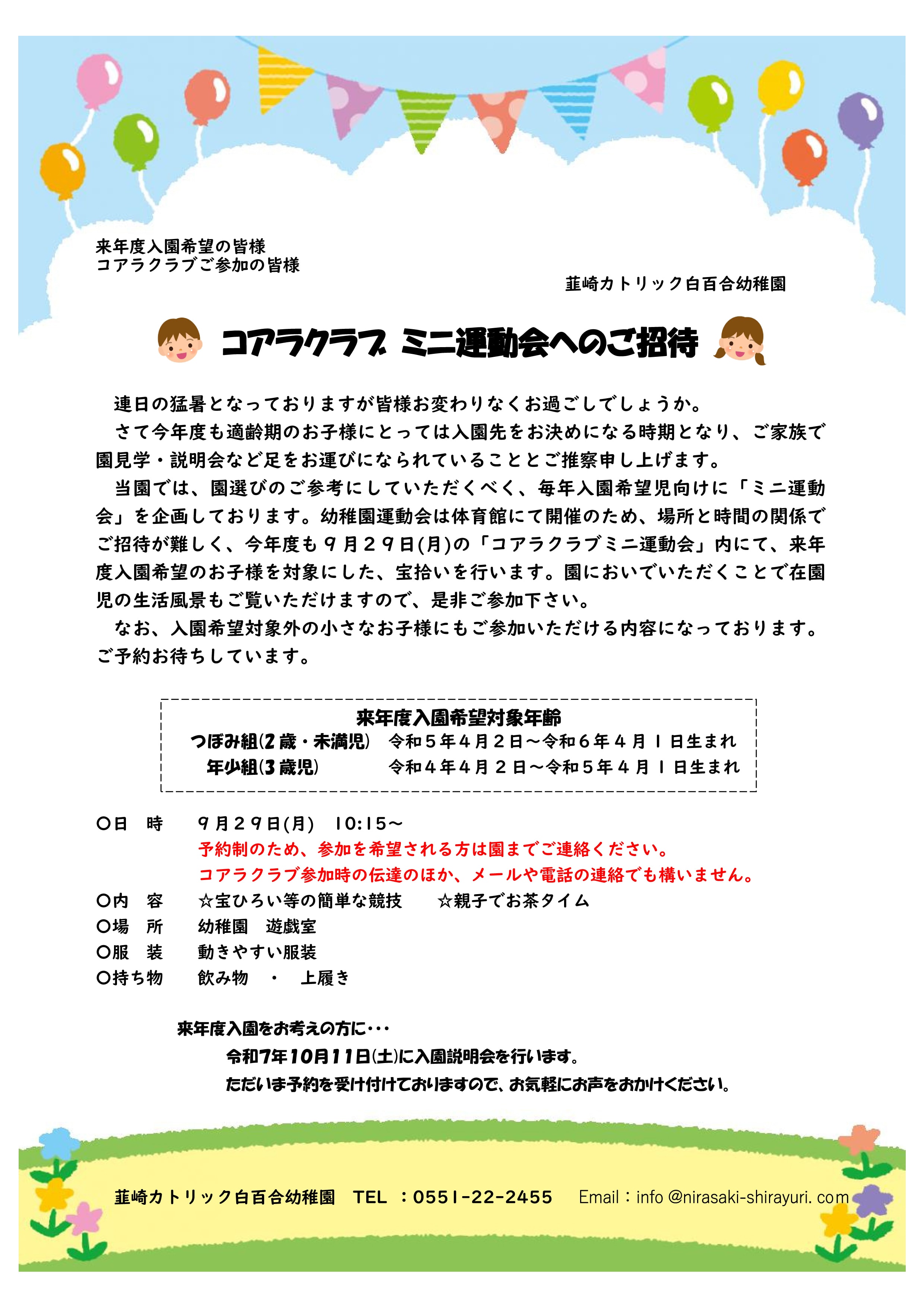 新・入園募集案内